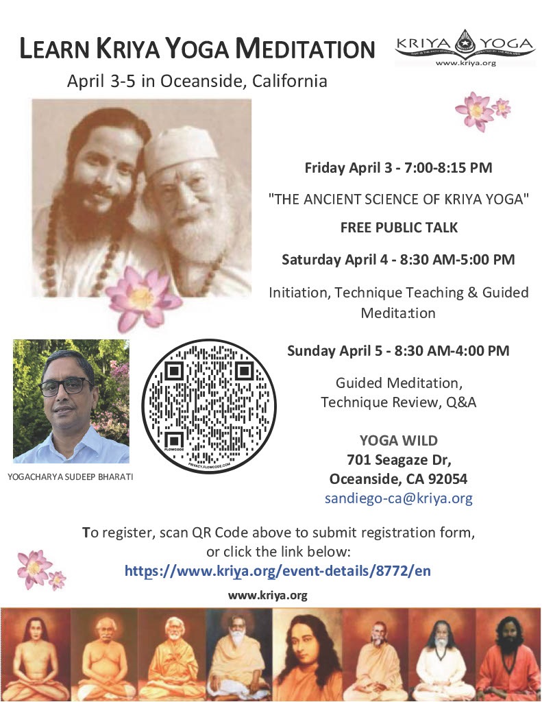 09:00 am – 12:00 pm Kriya Yoga Initiation