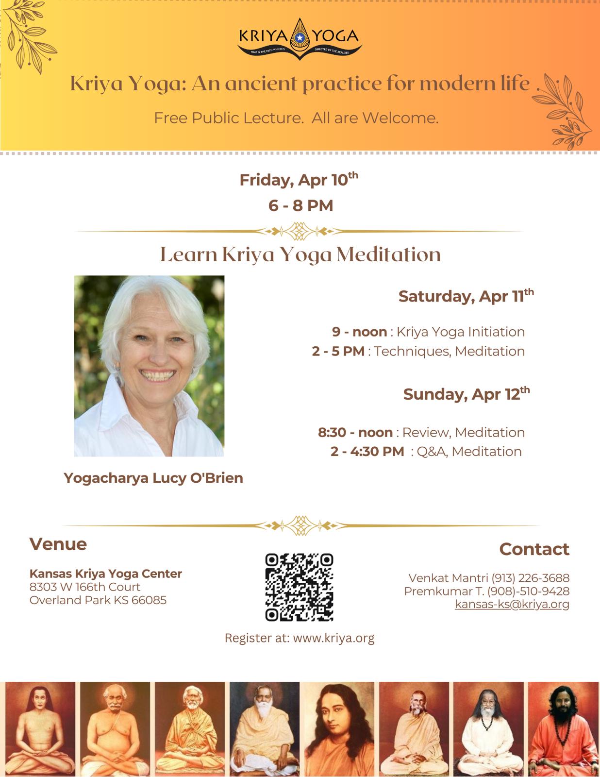 Saturday & Sunday program is limited to those getting initiated at this event as well as to those already initiated into Kriya Yoga in the lineage of Paramahamsa Hariharananda and Paramahamsa Prajnanananda.The minimum age to get initiated is 13 years.Those getting initiated at this event must be present on both days, Saturday and Sunday, to get full understanding of the Kriya Yoga technique.Please go through the following links before attending the event: About Kriya Yoga (Please watch the “An Ideal Starting Point” video) About Kriya Yoga Initiation Code of Discipline & Dressing GuidelinesOfferings of three articles are required for the initiation: